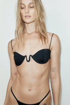 Lingerie-style bikini top with delicate elasticated straps and a cup-detailed, balconette bra silhouette. Completed with a U-shaped underwire design for a sexy, structured effect.