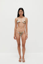 The Joa Bottom, a flattering micro-cut bikini bottom with high-cut legs and rouleau side straps for a minimal, comfortable fit.