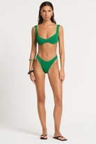 The Christy Brief features a 90's style, high-cut silhouette and high waistline, flattering your figure and providing cheeky to moderate coverage. Handcrafted in Sydney, Australia from The Authentic Crinkle™.