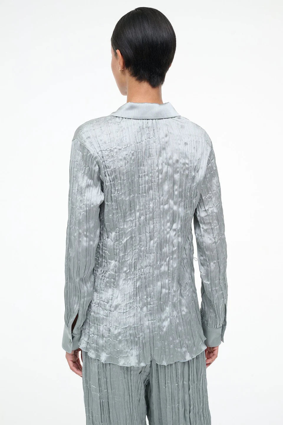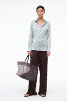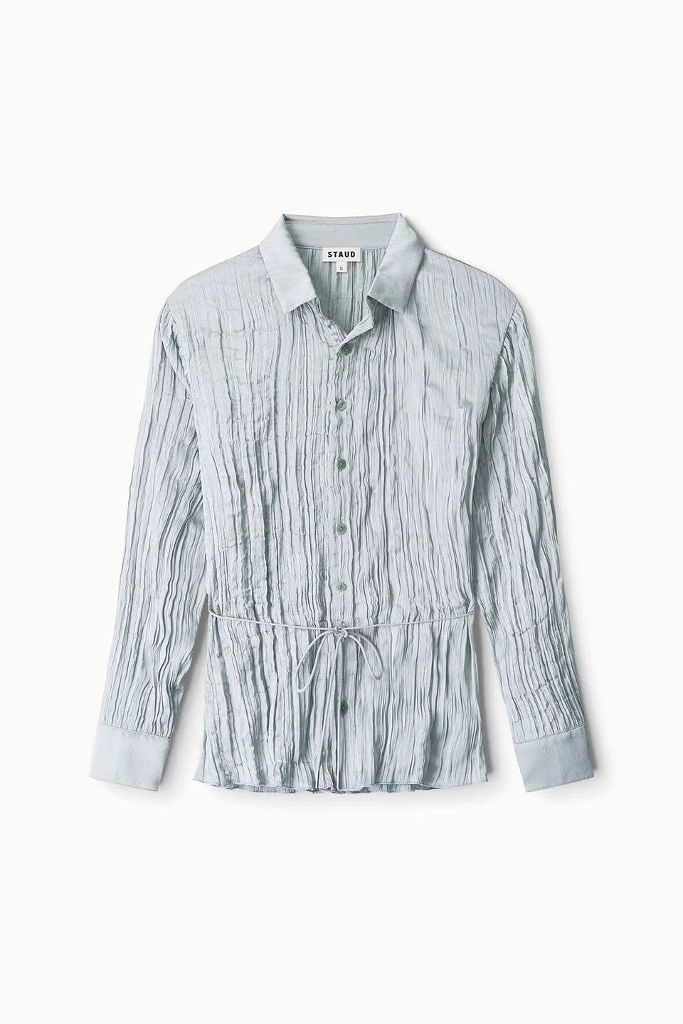 The Suki Shirt is a long sleeve collared button-up with a removable waist tie. The Suki can be paired with the Nami Pant for a matching set.
