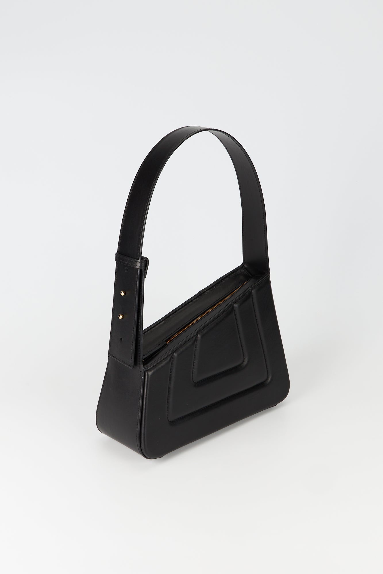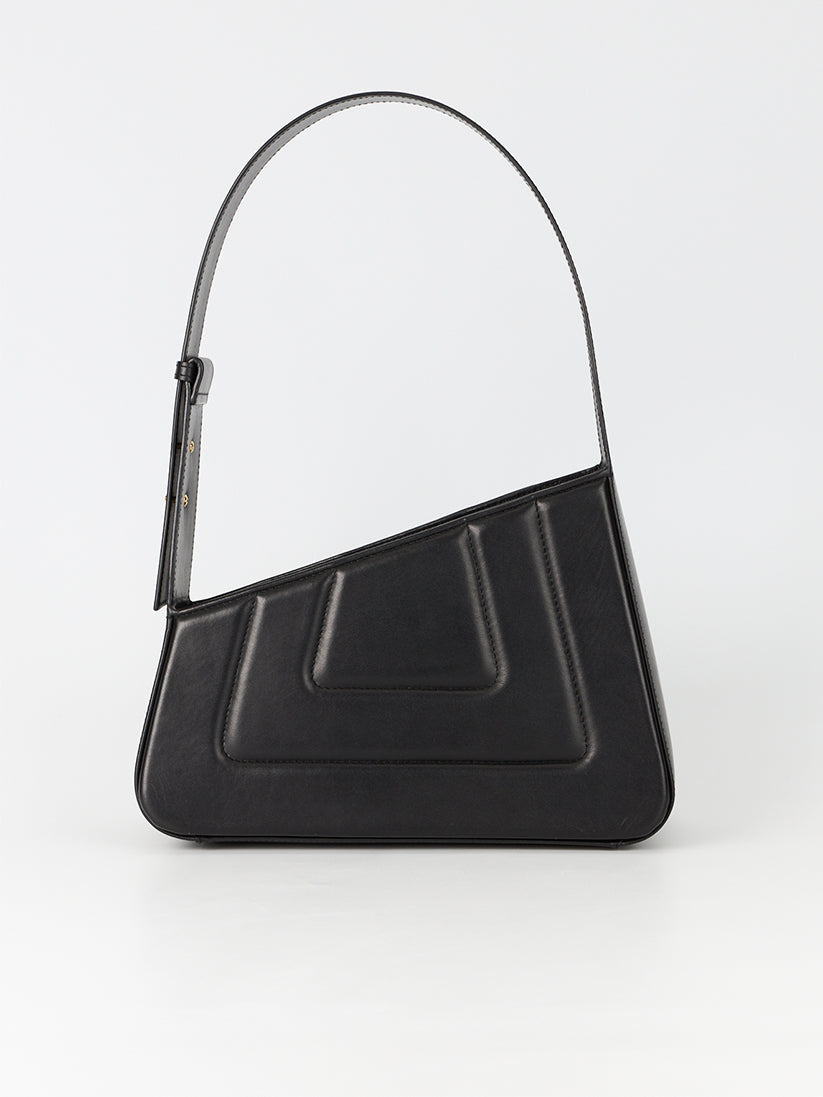 This is a quilted handbag crafted from calf leather. It features a zip-top and silver hardware trims.
