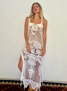 DRESS WITH STRAPS, HAND KNITTED COLORFUL MOTIF, AND A ZIP FASTENING IN THE CENTRE BACK