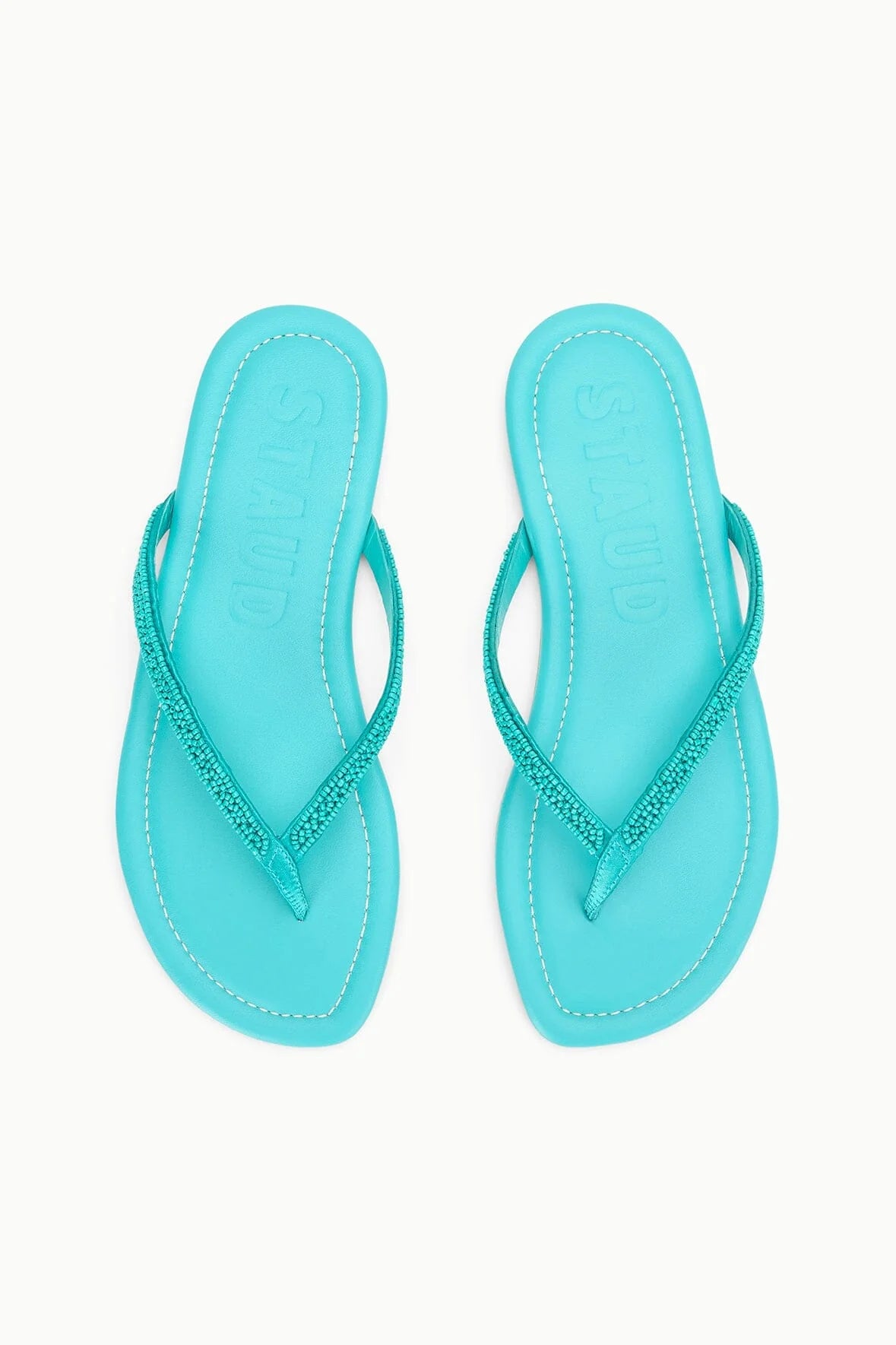 The Freja Thong is our new leather sandal for the season, crafted in buttery nappa leather with a beaded upper.