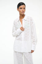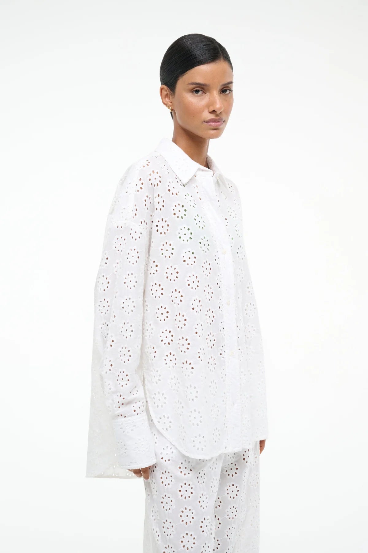 Constructed out of a cotton eyelet fabric, the Colton Top offers an oversized fit and can be worn as a set when paired with the matching Bonfire Pant.