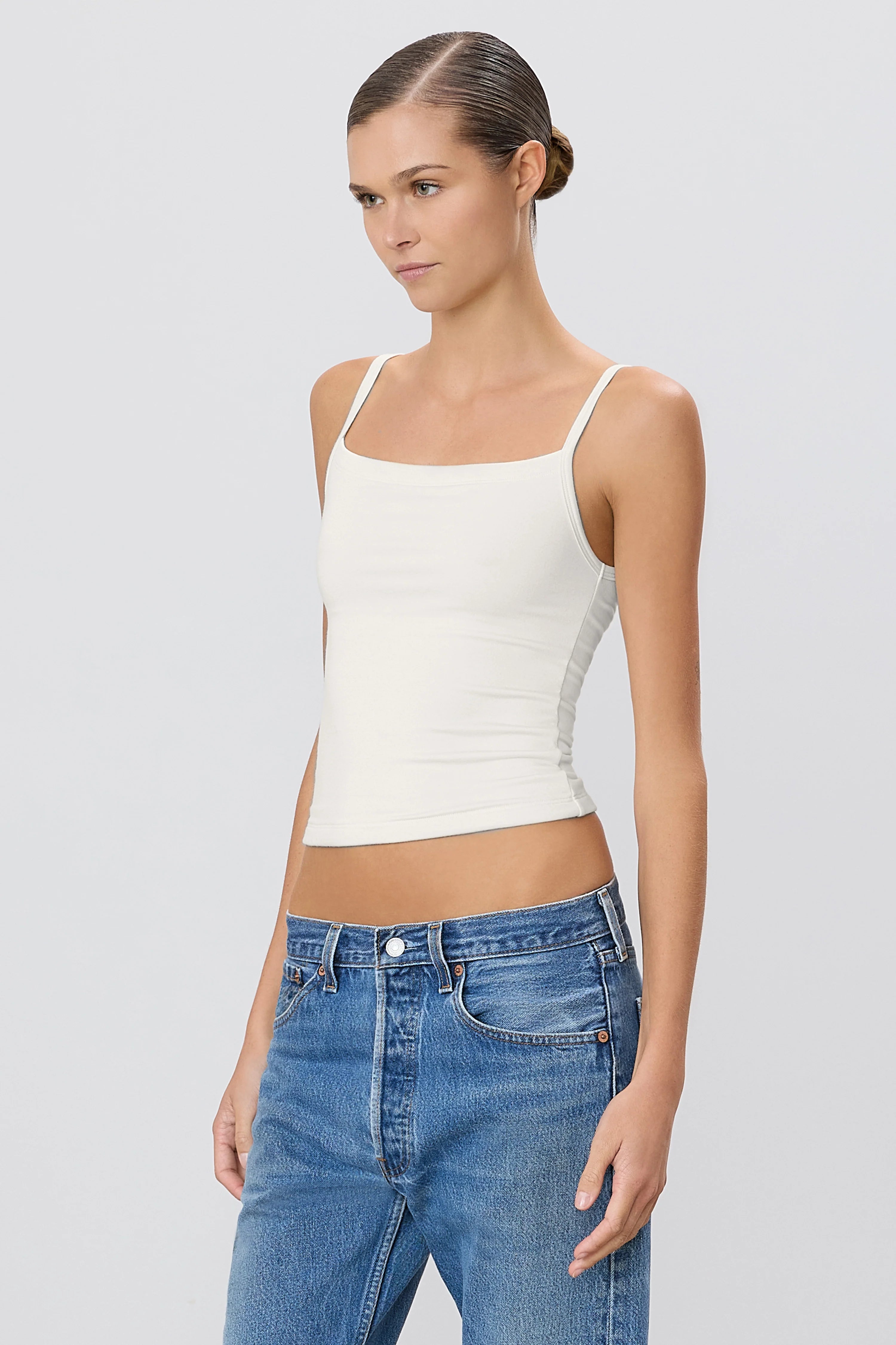 ÉTERNE's '90s Tank is crafted from our soft jersey modal blend, offering a slim fit and double lined fabric for a supportive feel—a versatile essential for everyday wear.