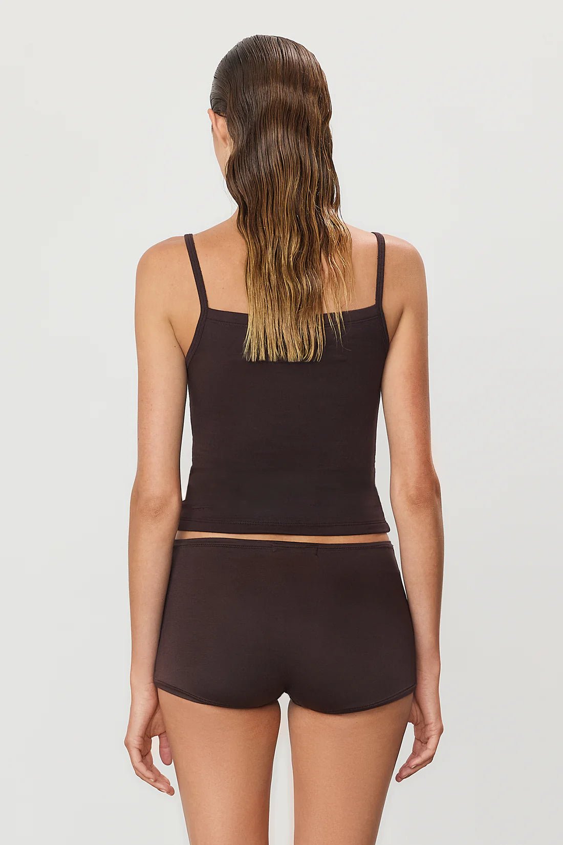 ÉTERNE's '90s Tank is crafted from our soft jersey modal blend, offering a slim fit and double lined fabric for a supportive feel—a versatile essential for everyday wear.
