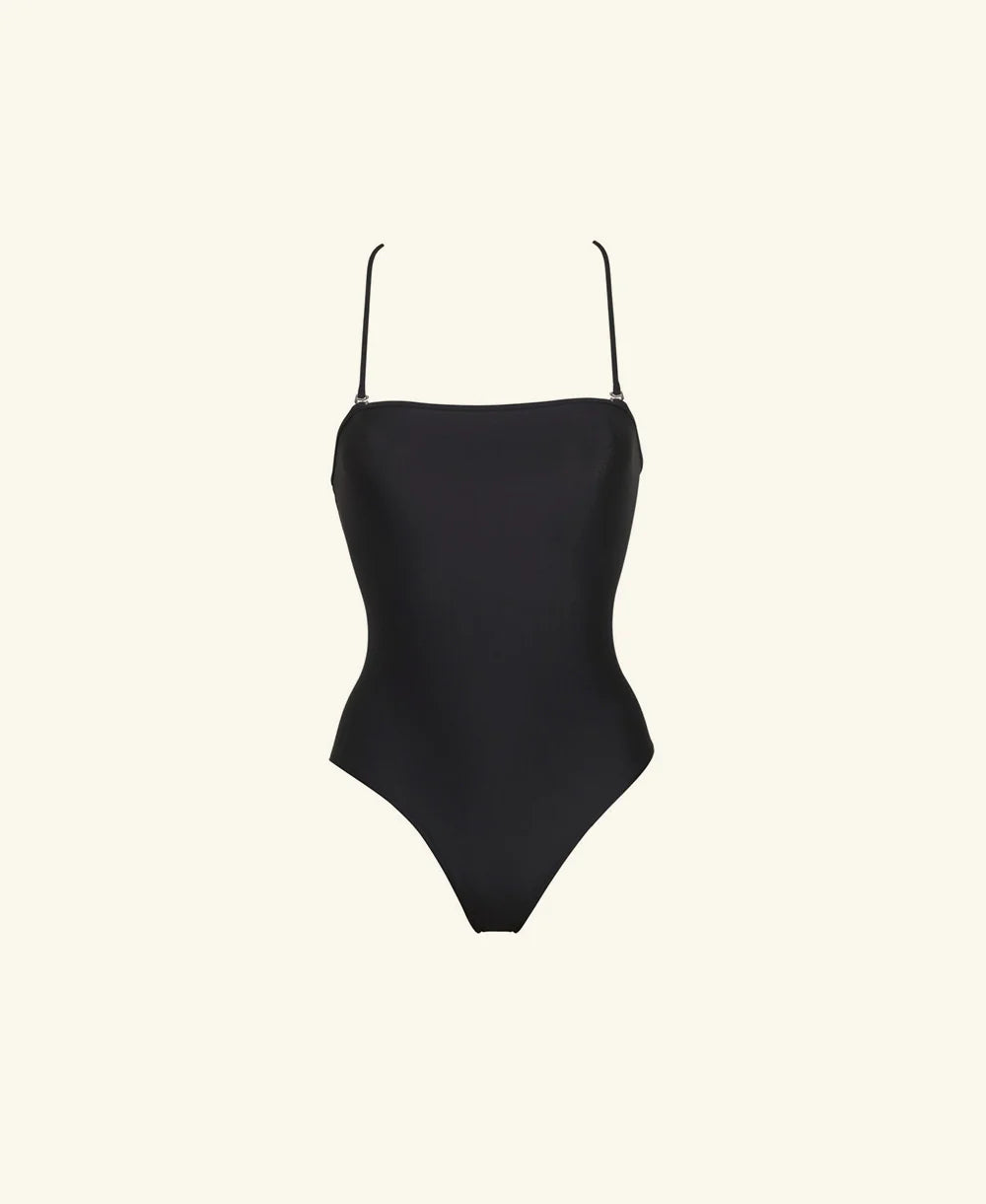 soberly sculpting your figure with elegance, the lola one piece is a swimwear wardrobe staple designed with a vintage look square neck.