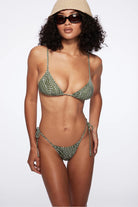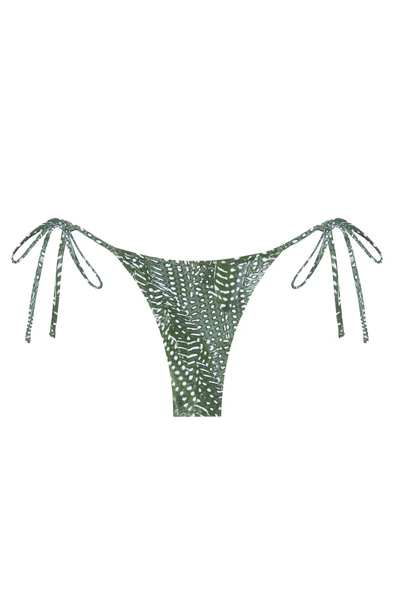 Triangle bottom with minimal back coverage. adjustable side ties for a custom fit. available in our new digitally printed fabric and fully lined for comfort and the right amount of coverage.
