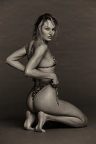 Jamea is 5’9”, 32D bust, 24.5” waist, 35.5” hips. pictured wearing a size medium top, for a more revealing fit, and small bottom. size up in the top for more coverage.