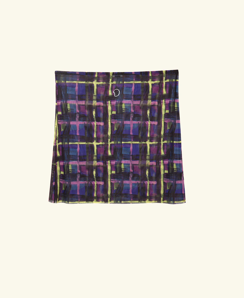the punk print is a rebellious echo of the mid-90s punk era. a deconstructed plaid, hand-painted on silk before merging with our signature technical fabrics. vivid strokes of neon and deep contrasts collide, capturing the raw energy of underground nights and electric freedom.
