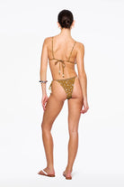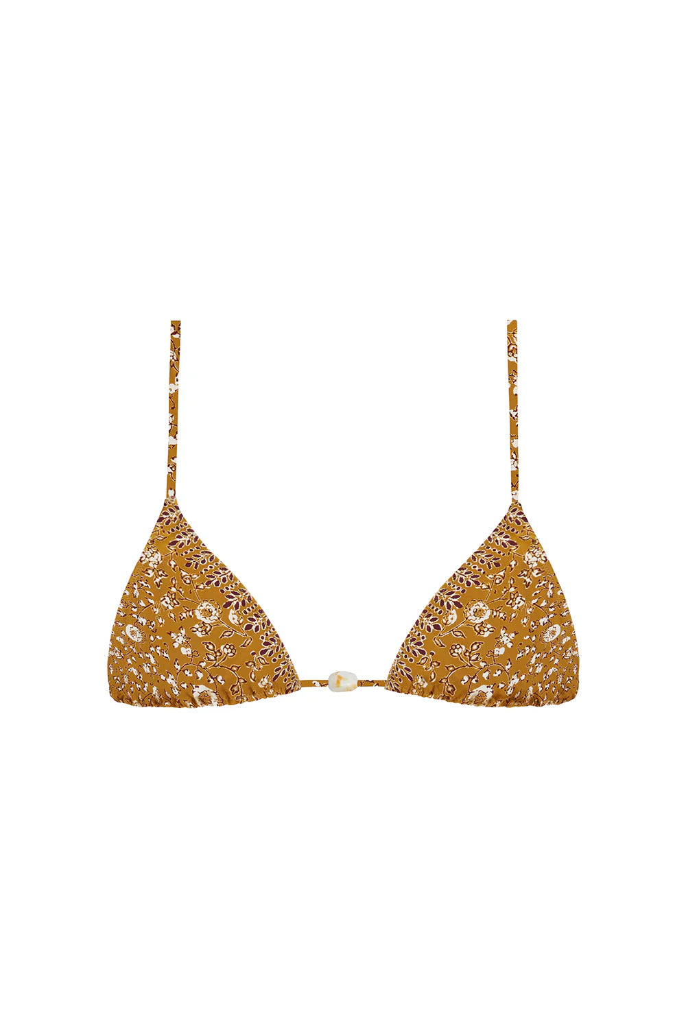 our equator top, now with beads. a classic triangle top featuring a tonal bead at center front, with straps that tie at back. shoulder straps and cups can be adjusted along the drawstring to find your perfect fit, or can be detached and tied at the neck.