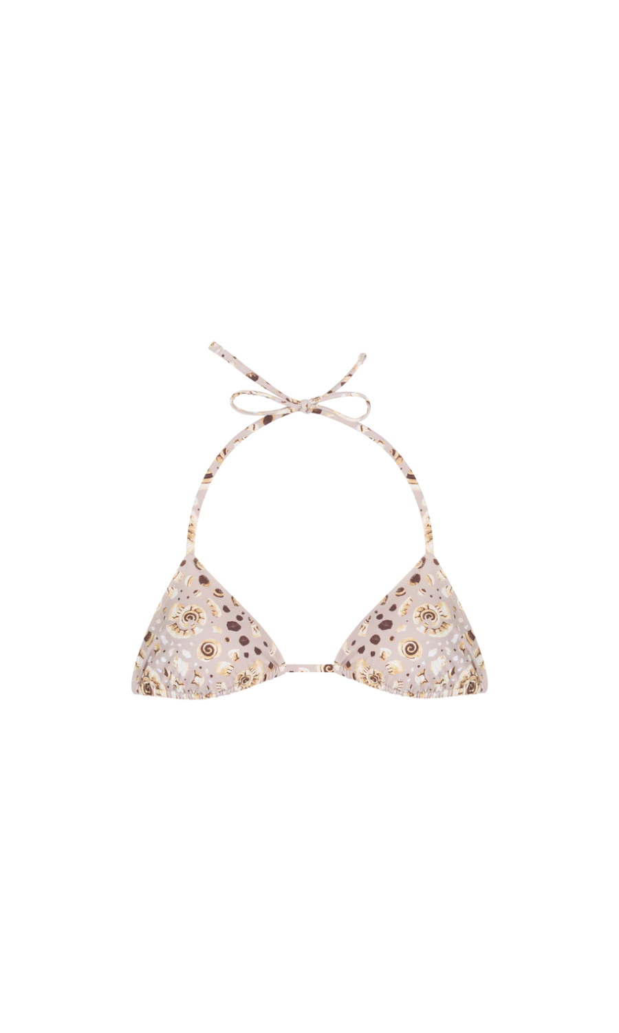 A new tiny triangle top in embellished with gold and emerald green beads. Sizing is adjustable with the neck ties and the back to offer optimal fit.