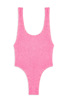 Ruby is proof that sometimes keeping it simple is the sexiest of all. Designed to show a little side boob, this one-piece also features cheeky, high-cut bottoms for a long, leggy look—so you’ll nail that ’90s vibe from every angle.