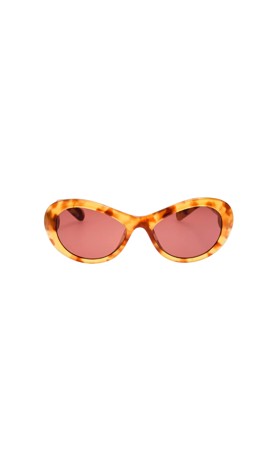 Crafted from beige tortoiseshell acetate, the Rond sunglasses feature a sleek oval silhouette enhanced with sculpted nose pads for a comfortable fit. The temples are detailed with silver branding while solid burgundy lenses offer UV protection