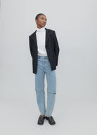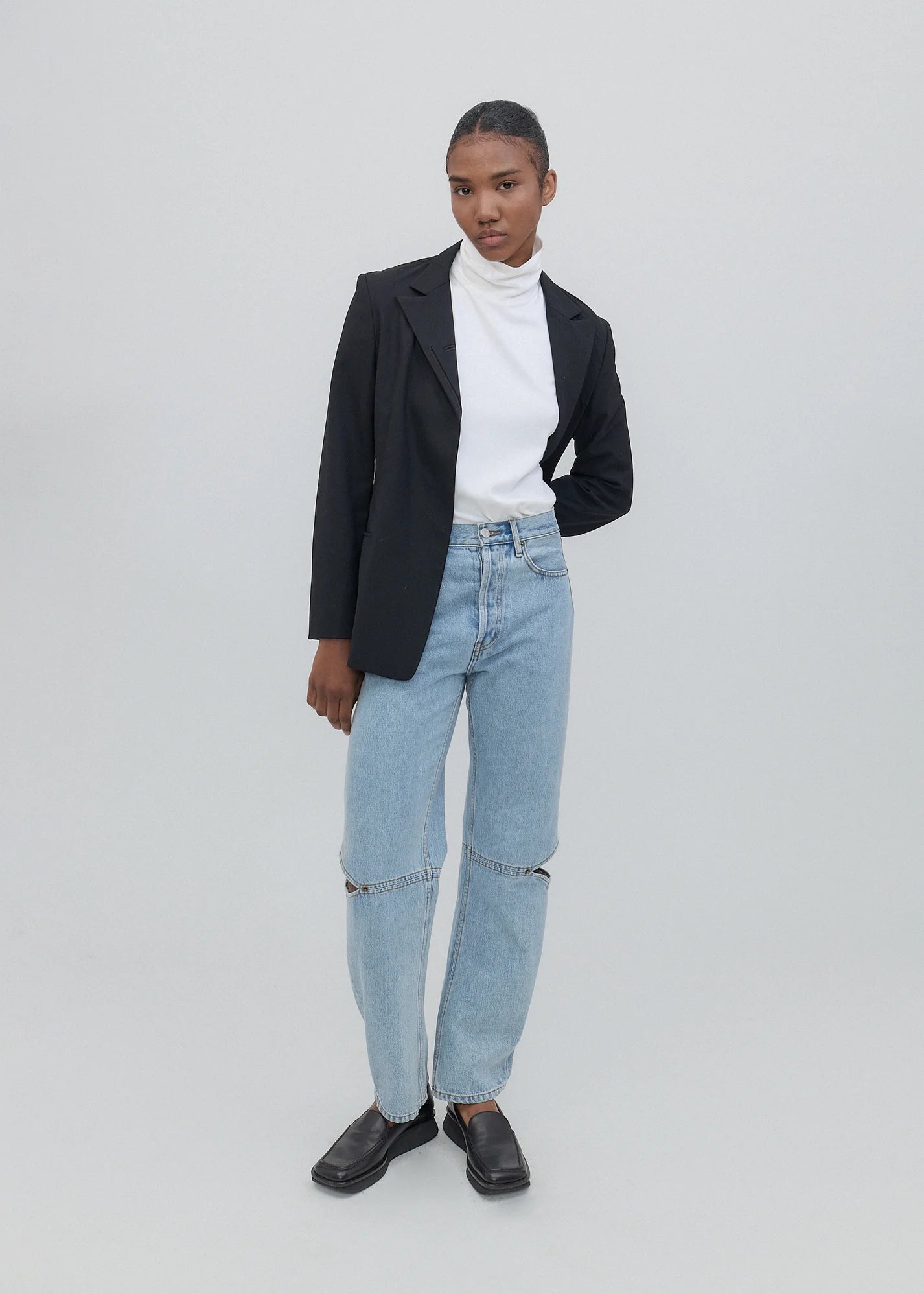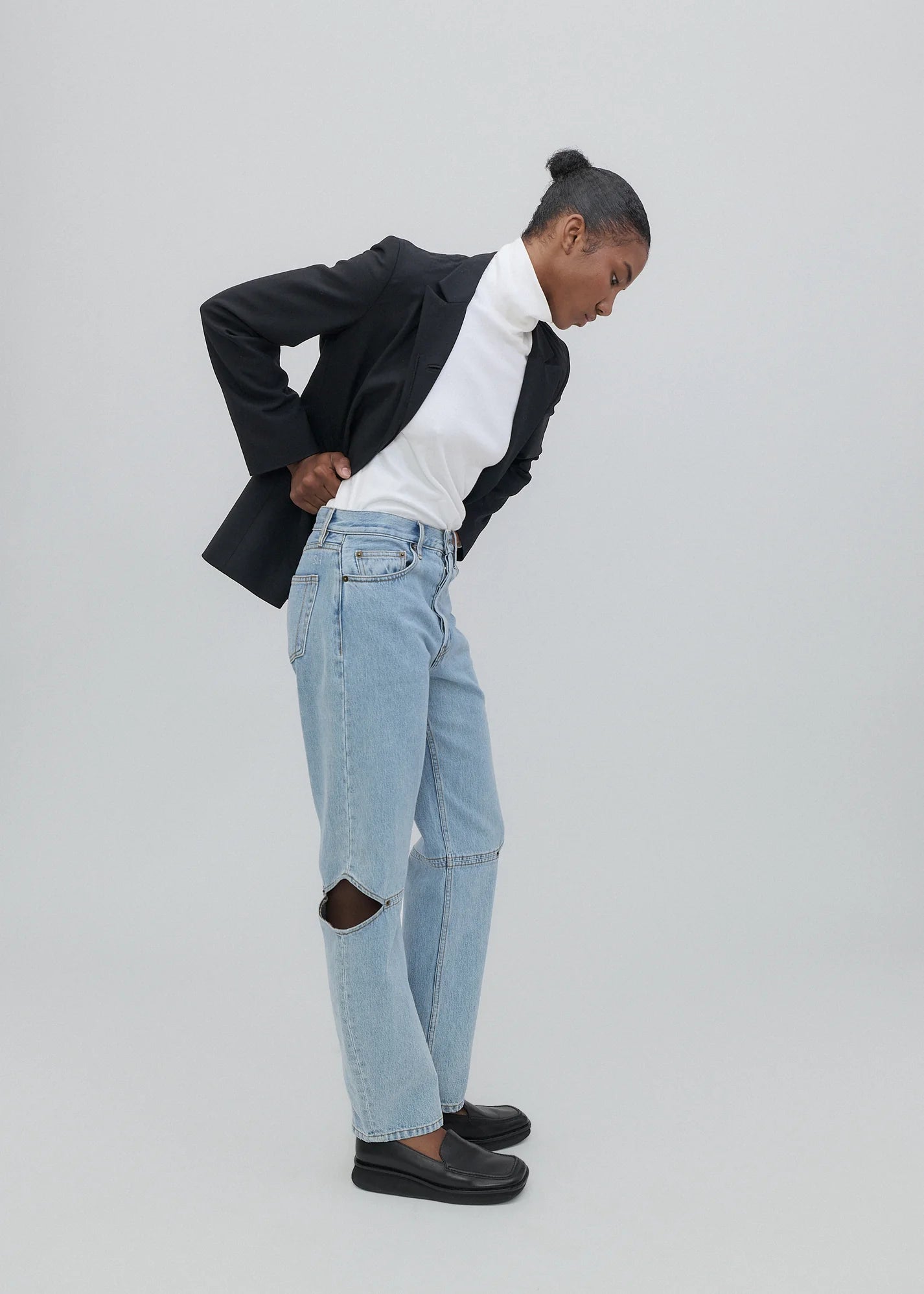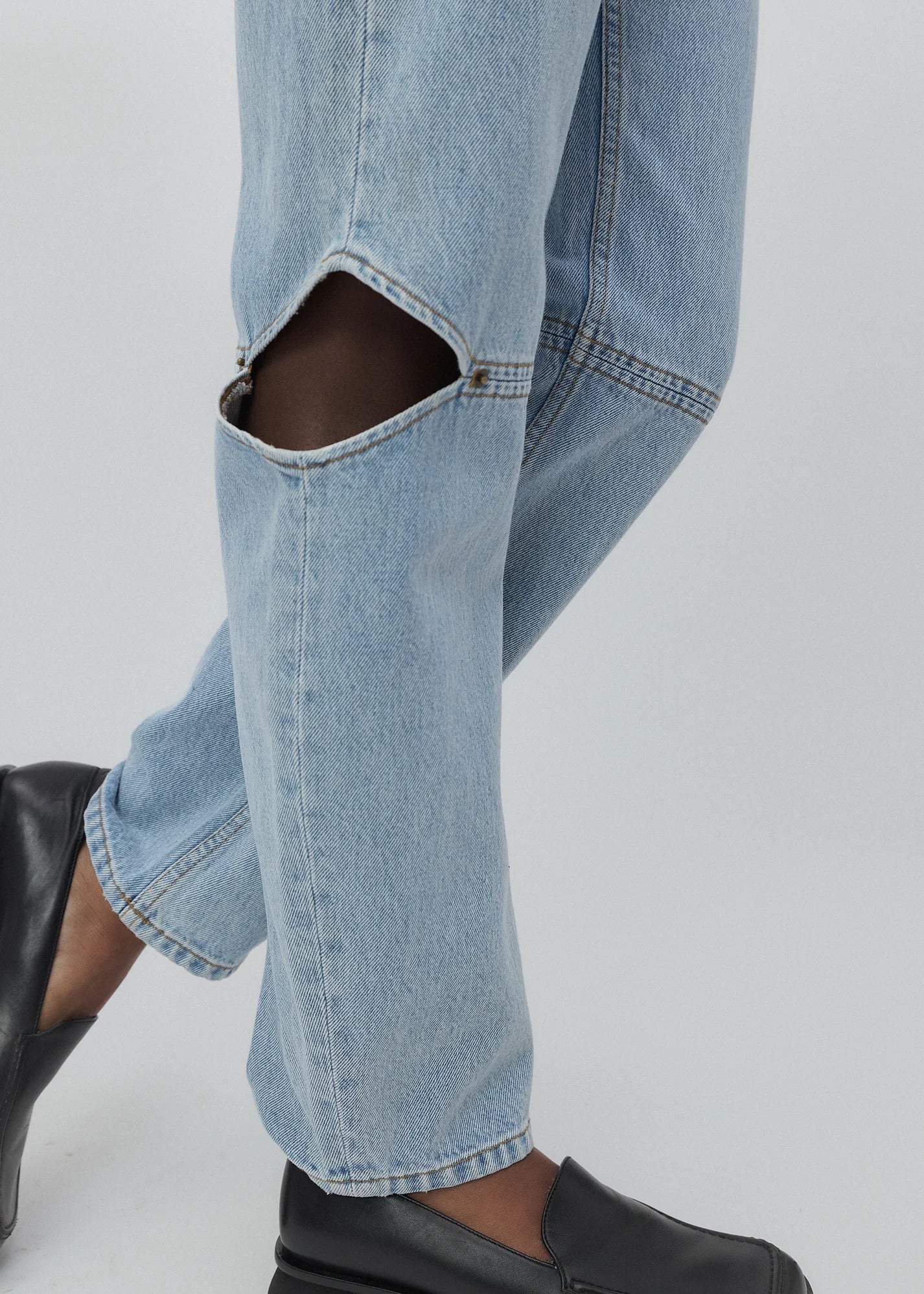 The Cowgirl Jean is inspired by horseback riding cowgirls of the late 19th century. This jean features an inward angled leg and diamond cut-outs on the side knee. These cut-outs are secured with our custom rivet hardware. It features a classic button fly, custom hardware and our signature 'SH' embroidery.