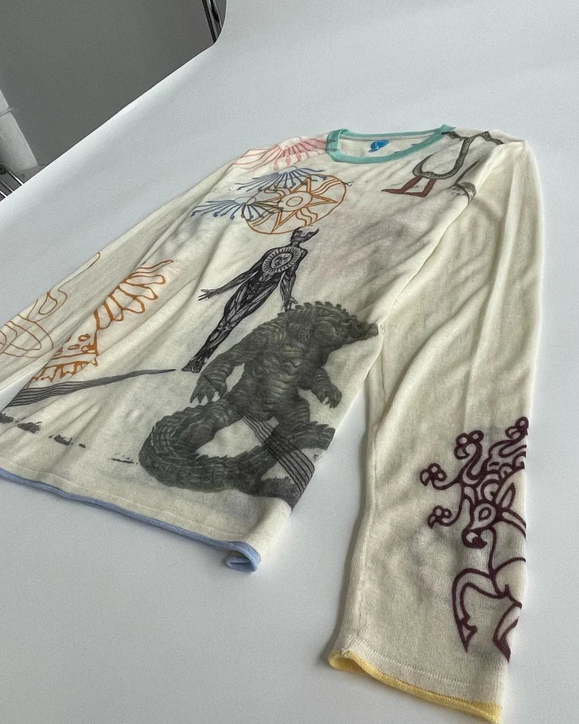 Adrian Cashmere's signature sweater. The Genesis Top is made from lightweight cashmere blend with a close, second-skin fit. We recommend that women size down for less oversized look. Models are wearing a size XS. All details and designs are hand drawn by Adrian Schachter in London.