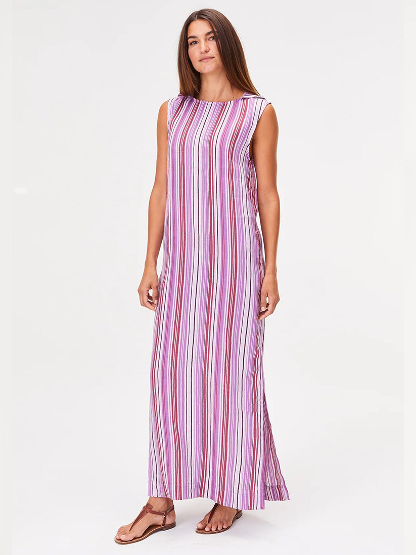 We love the chic simplicity of our new Column Dress in Blueberry Striped Linen. This sleeveless silhouette with an oversized hood, skims the body, has a high open side slit, and ends at the ankle. Our new Striped Linen elongates the body and this lightweight fabric can be worn alone or thrown over the Balconette High-Waist bikini in Raspberry Seersucker when by the pool. We are packing this Column Dress with flat sandals for our next trip to Marrakech.