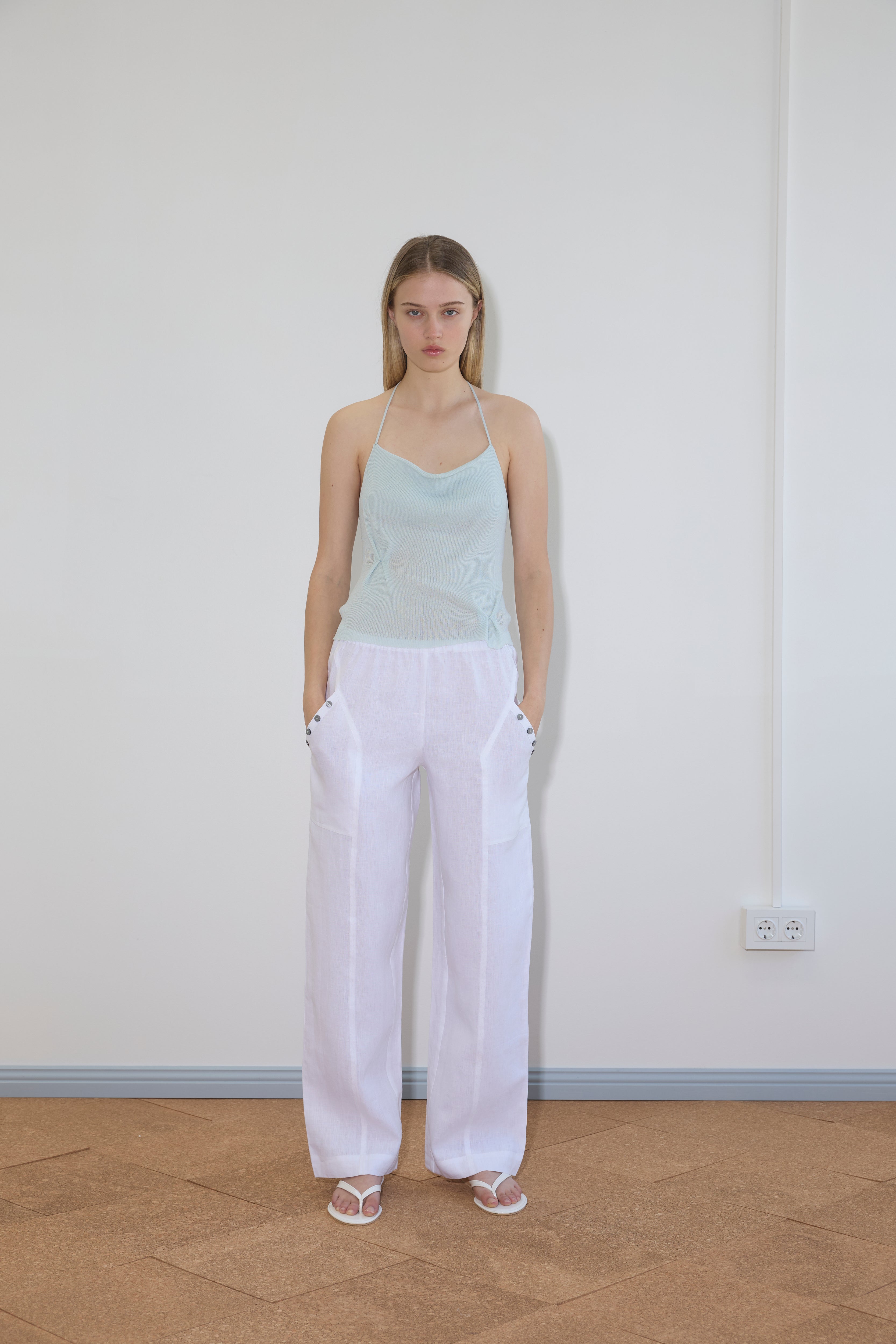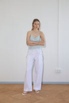 the angle pocket pant by Deiji Studios in white