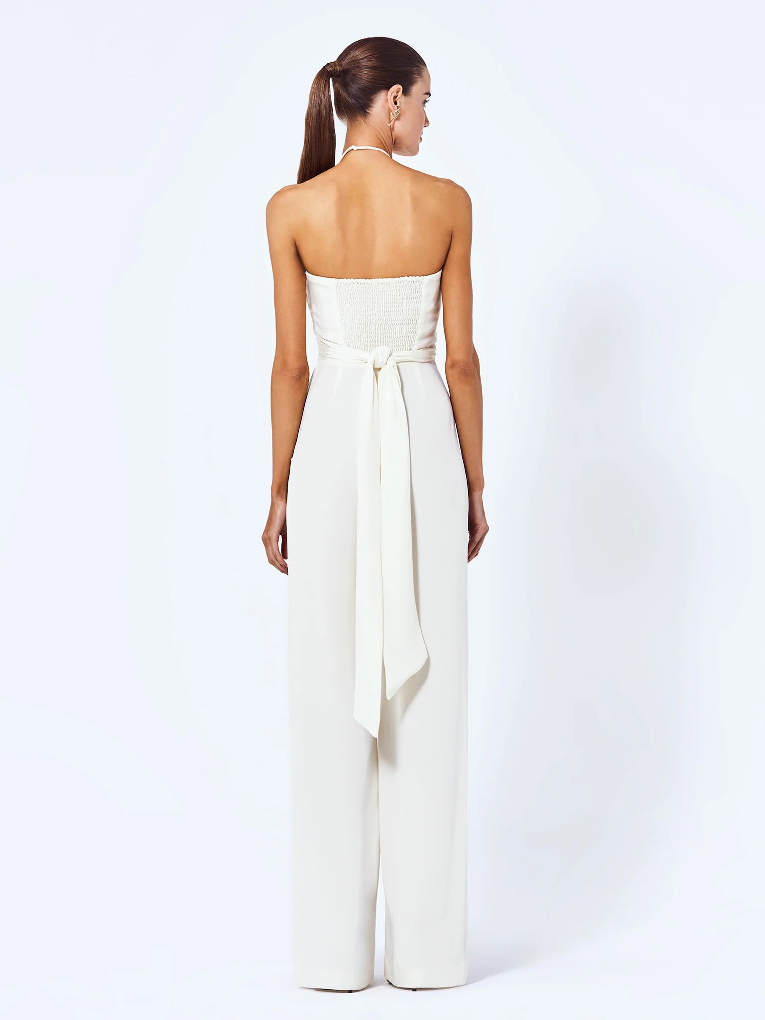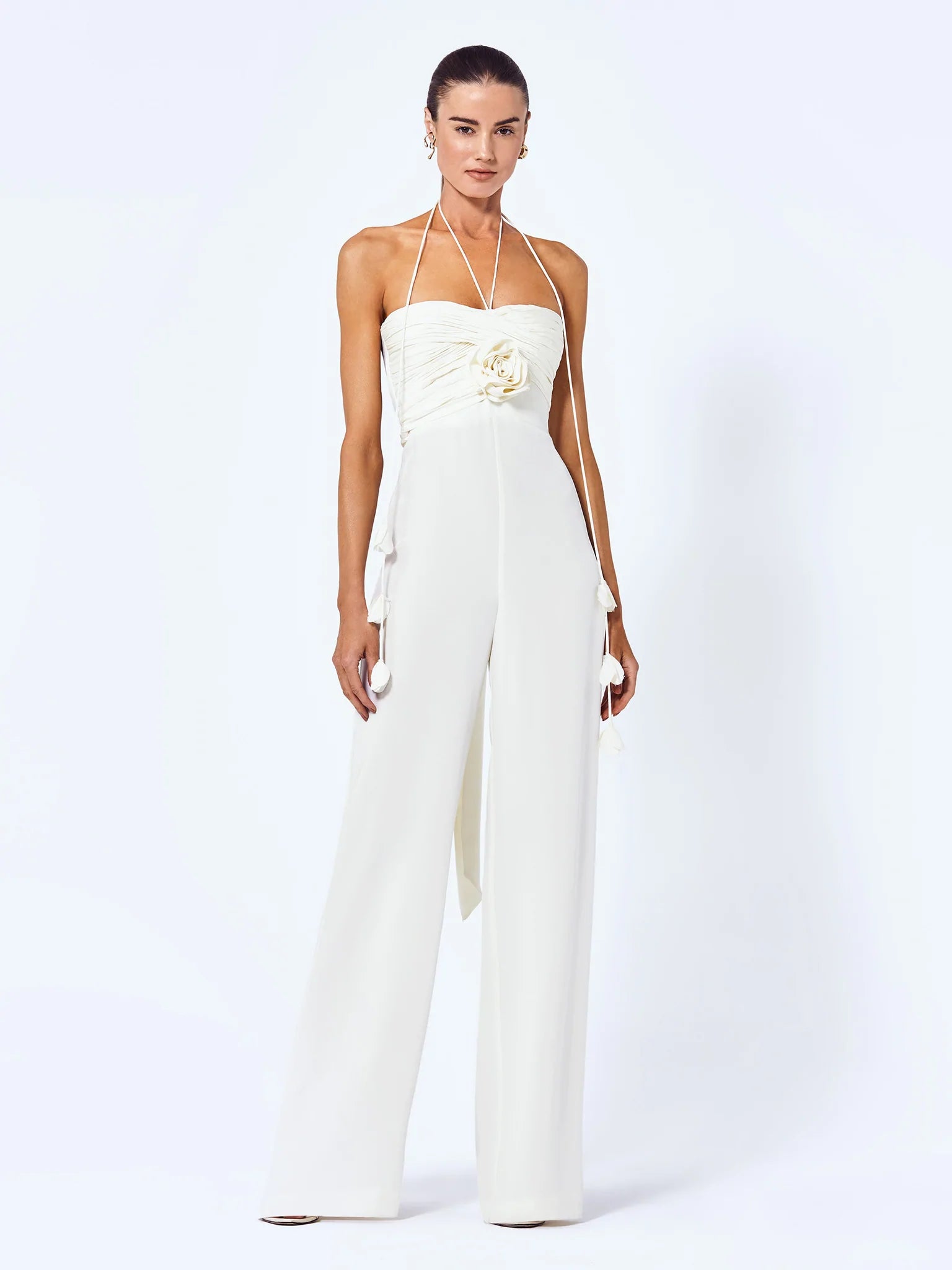 Elegant and chic, our Katalia jumpsuit features a delicate rose at the center and petal details on the ties. Pair yours with dainty gold jewelry and sandals for an elevated look for any special occasion.