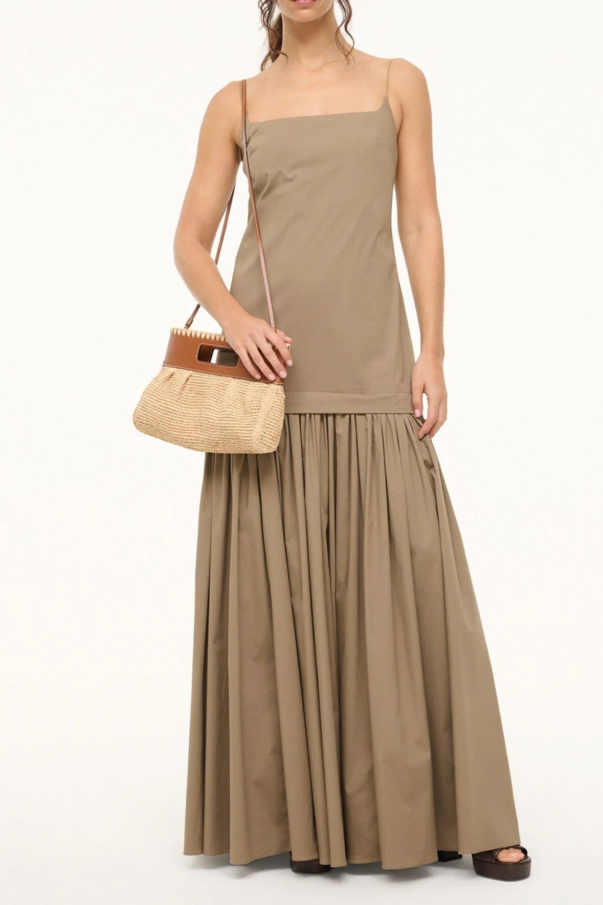 The Lena is a crochet raffia convertible clutch, featuring a removable long shoulder strap, leather handles, and a magnetic closure.