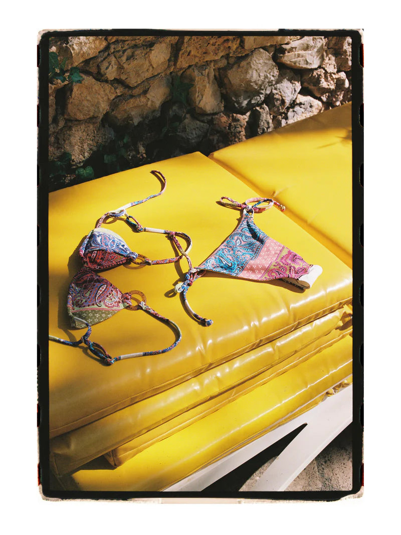 - Keeping it chic, the signature French scarf enjoys a renaissance with our striped paisley, Marseille ~ a retro melange of olive, rose, pistachio and purple-blue tones. Exclusively designed BOTEH print with engineered print placement.