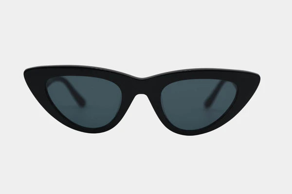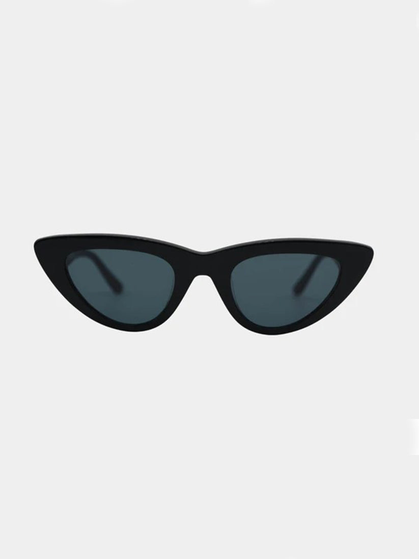These glamorous black sunglasses are crafted with bold bioacetate frames in an upswept cat-eye design, creating eyewear that evokes poise and allure.