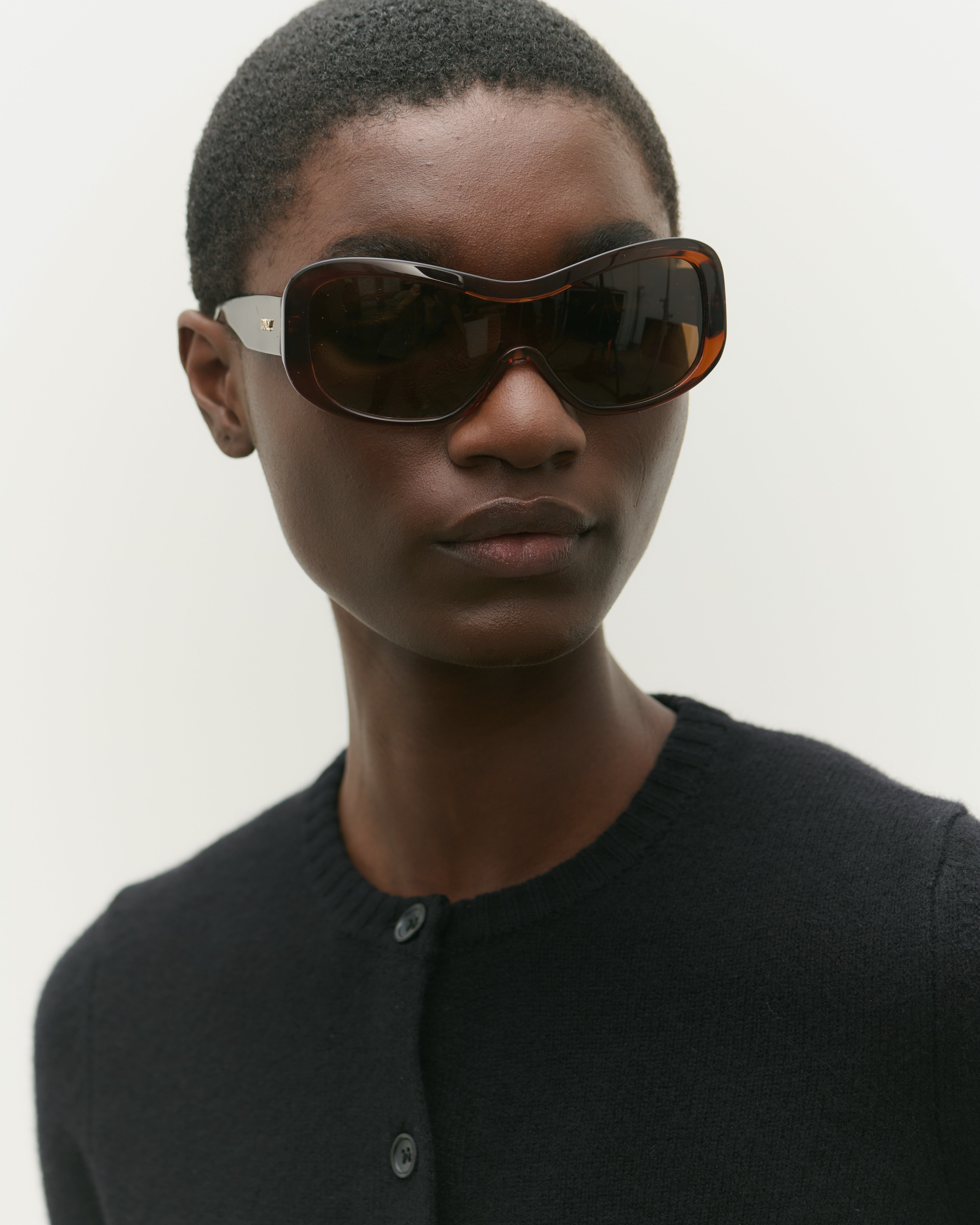 A design-led mask frame featuring a bold shield lens, Nina combines a confident silhouette with functional detailing. Crafted from lightweight yet durable Italian acetate.