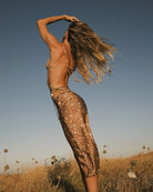 90's inspired knee-length skirt with elasticated waistband made in mini floral printed fabric. features a flattering bias cut silhouette and designed to worn at waist or hips.