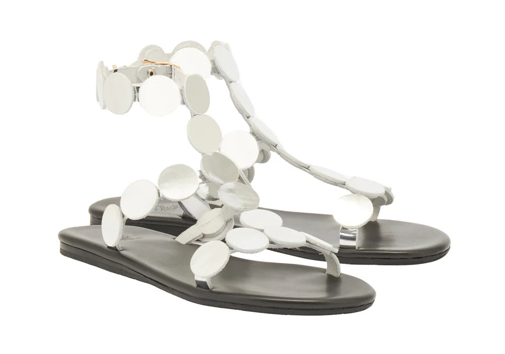 The bestselling Discs collection takes another turn in the spotlight – we've refreshed this style with our new thin flip sole. The Triton features mirror-leather discs in a gladiator shape to create an eye-catching sandal that will take you out on the town – but in comfort. Which colour draws your eye?