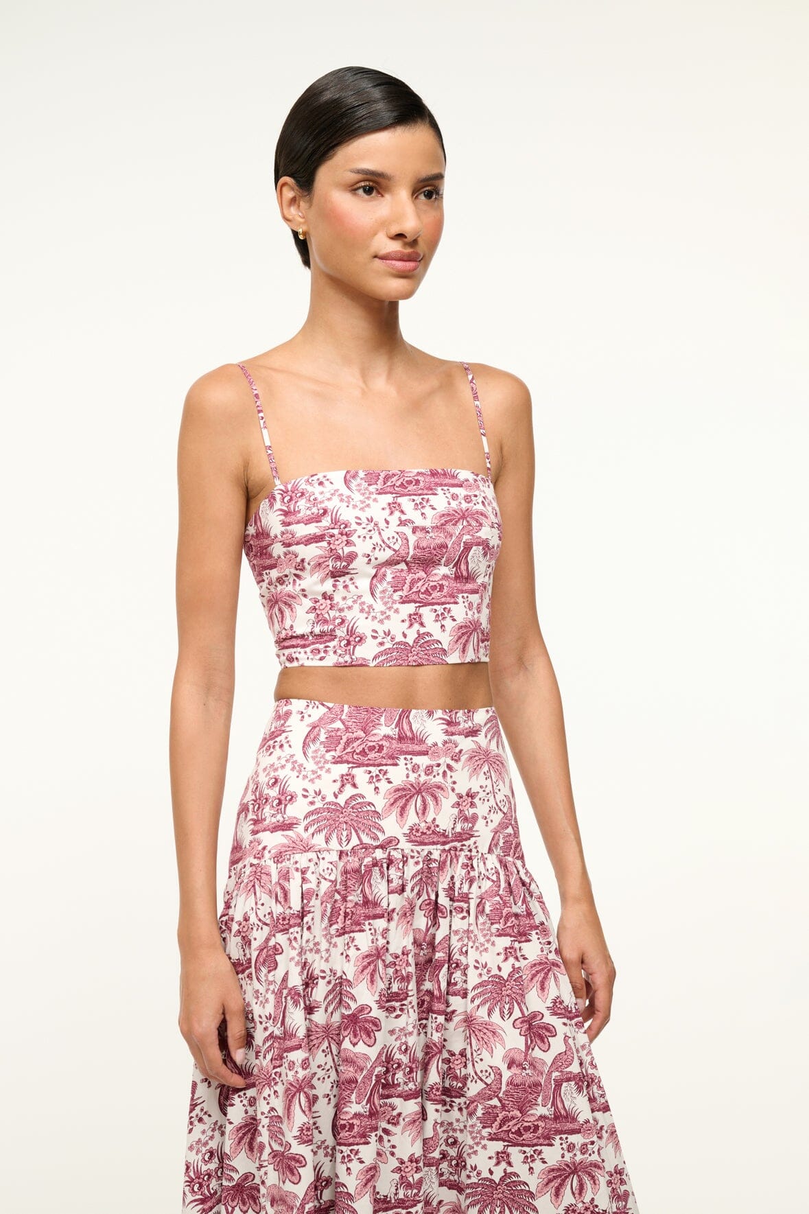 A cropped spaghetti strap tank made from stretchy cotton, the Federico Top features adjustable straps and a zipper closure at the back. Pair this top with the matching Procida Skirt for a coordinating look.
