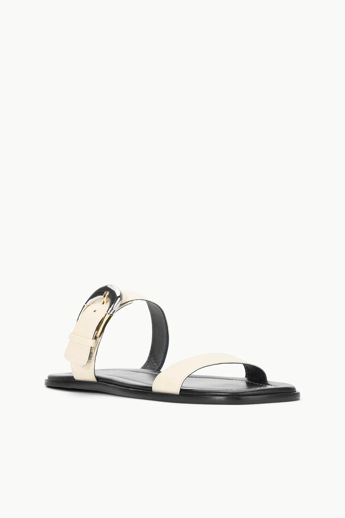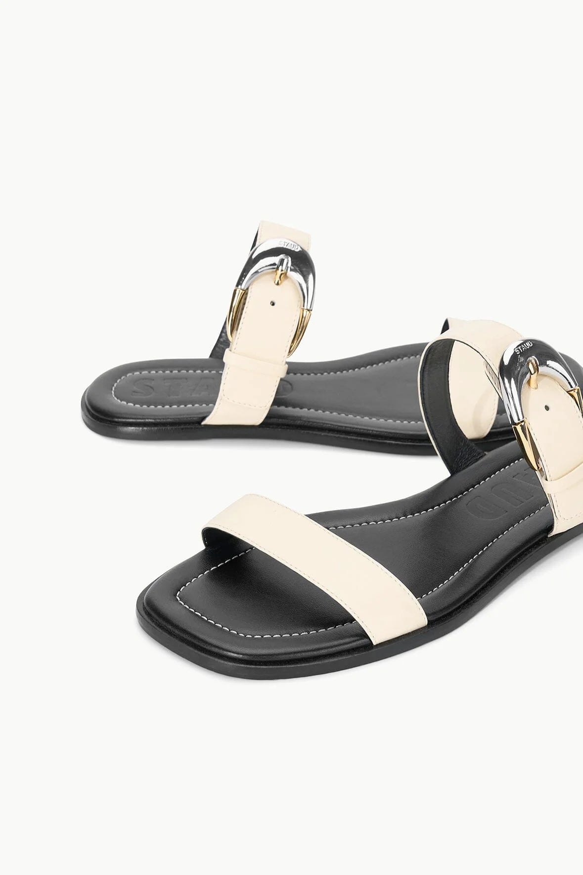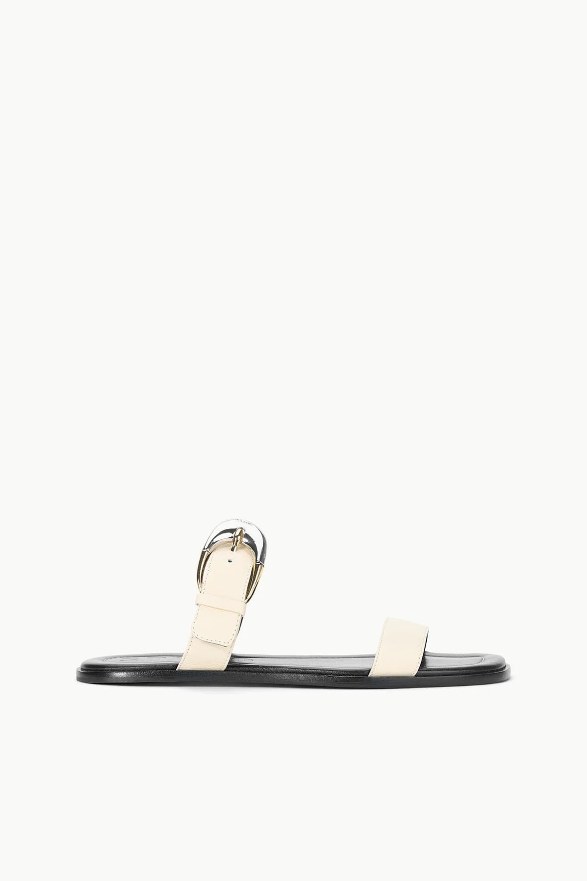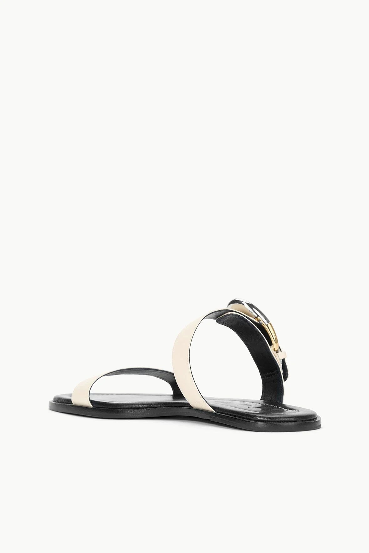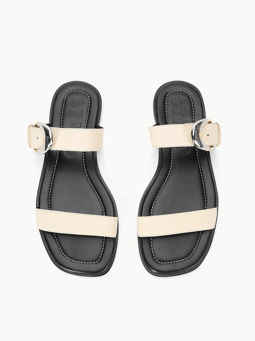Our newest footwear family, the Harlow is offered in a flat slip-on sandal featuring our moon buckle detailing on an adjustable strap.
