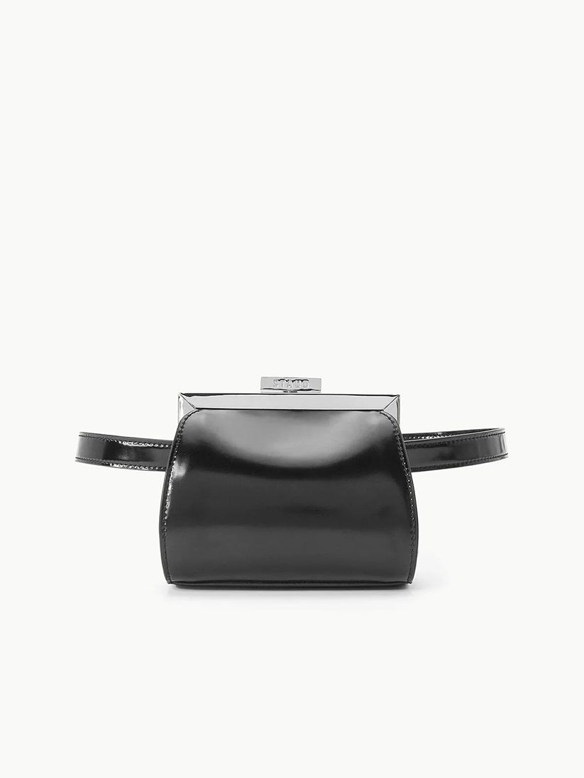Small frame bag can be worn as a belt or converted into a shoulder bag with its non-adjustable alternate strap. The Lennon features metal feat for added protection and interior pocket with removable mirror.
