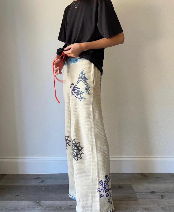 Made from ribbed cashmere, these trackies are designed for a unisex fit according to men's sizing. For a less oversized fit, women should order a size down. All details and designs are hand drawn by Adrian Schachter.