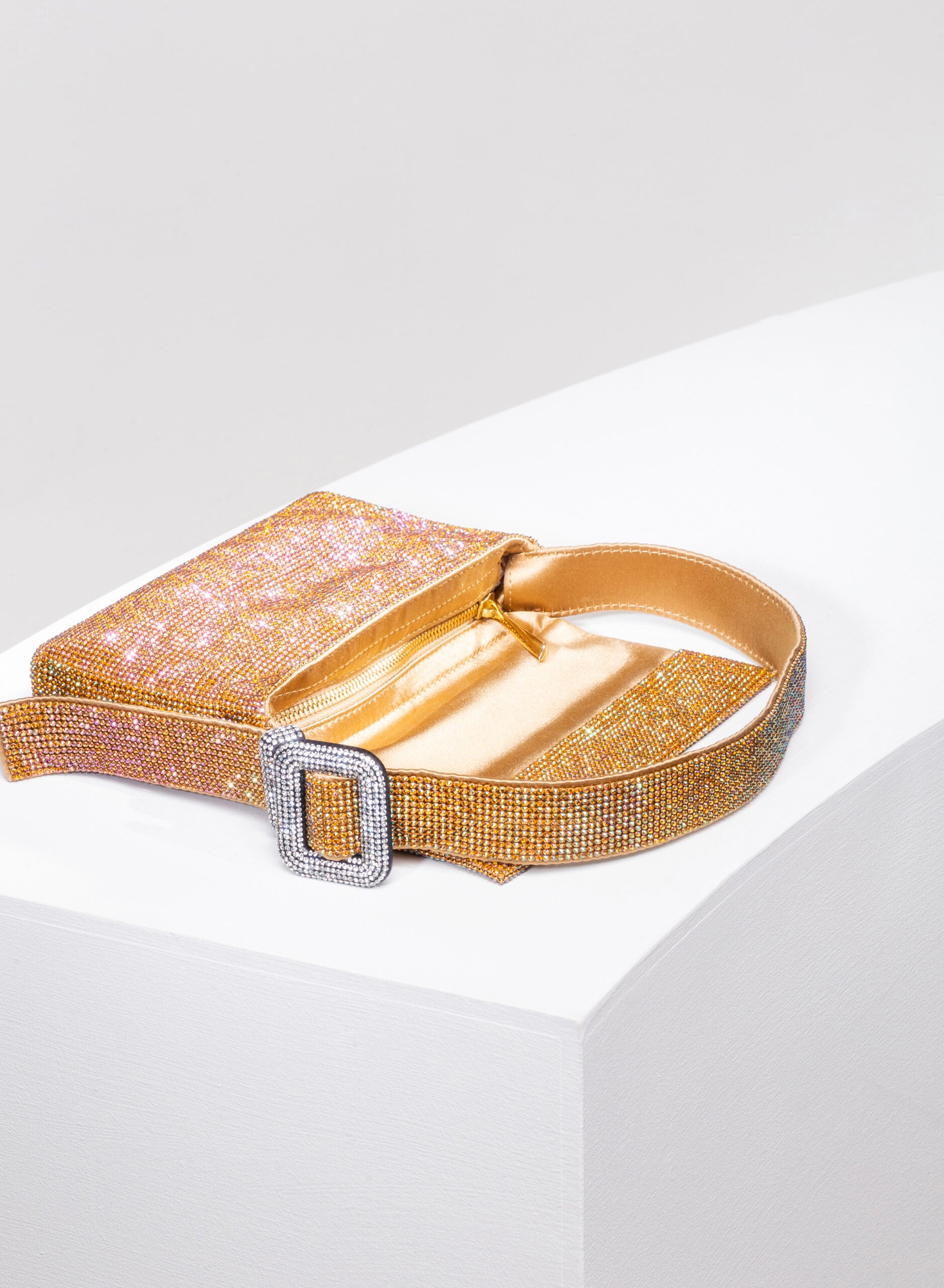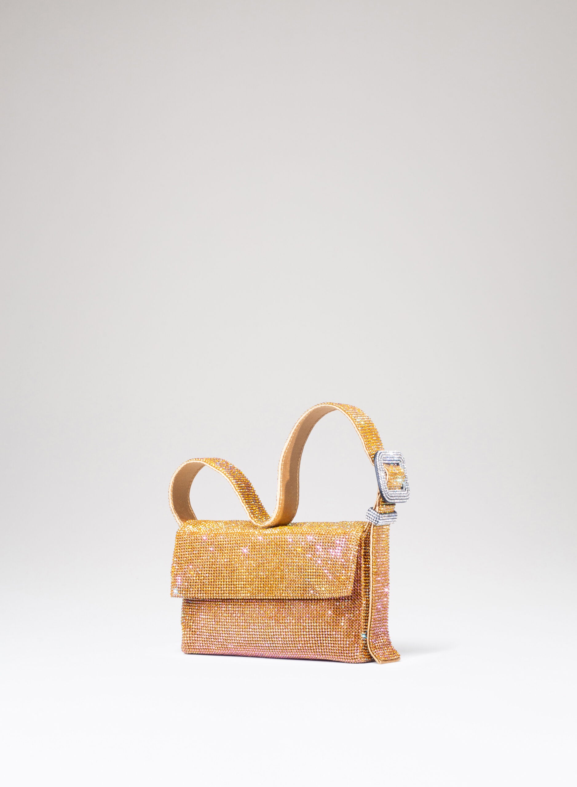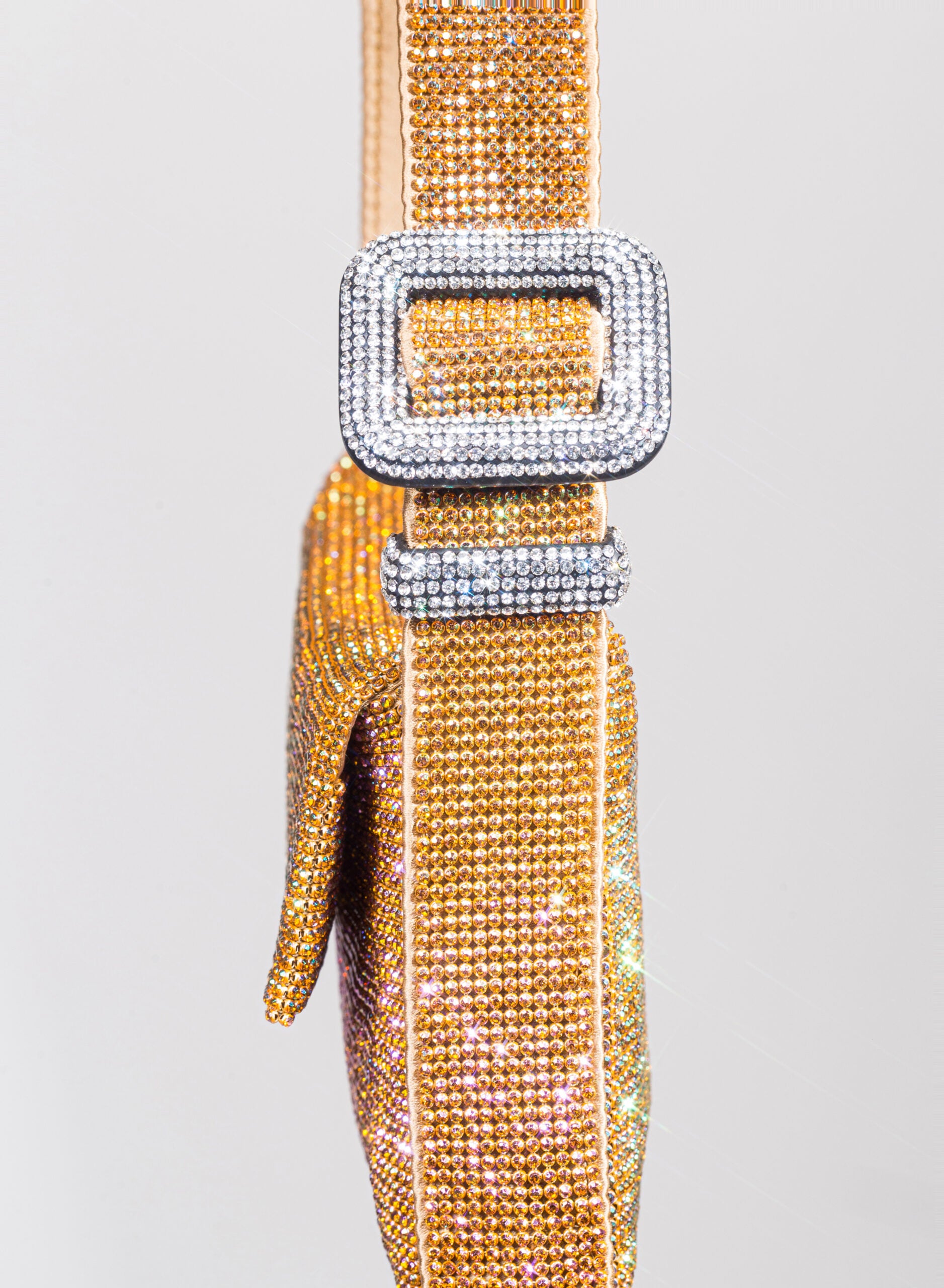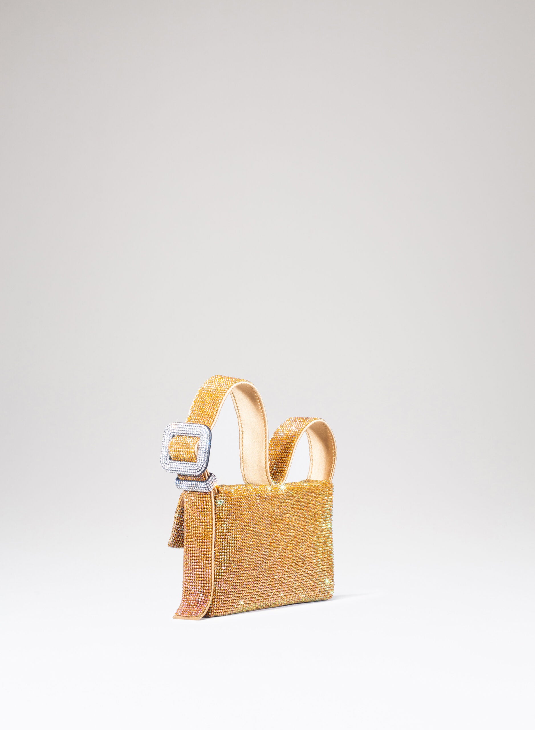 Everyone calls her VITTY but she prefers to be simply called “Monica”, and is a tribute to the great Italian actress, shy muse of Michelangelo Antonioni. She loves to be embraced tightly and knows how to reciprocate trepidately with the softness of a hand-sewn silk satin body. If you take her outside and hold her under your arm, whether for a moonlight or just for a firefly, with her mesh of crystals dress she knows how to shower you gently with her flickering reflections: it is her way of blushing.